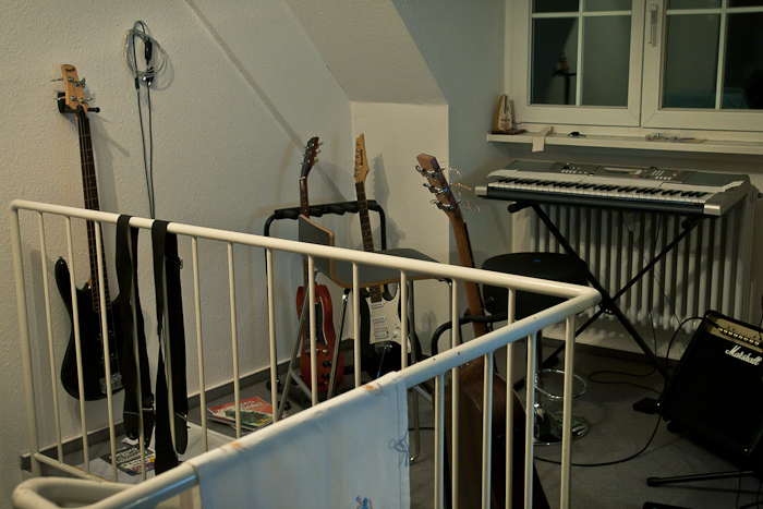 Die ambitionierte Idee einer dedizierten Musikecke, die ich beim Einzug in die Wohnung hatte, hat leider garnicht geklappt. Ich brauch die Instrumente einfach in meiner Nähe, damit ich sie regelmäßig benutze. Daher standen sie in letzter Zeit auch fast alle unten, was natürlich entgegen der Grundidee war. Jetzt ist wieder alles wichtige oben und in greifbarer Entfernung.