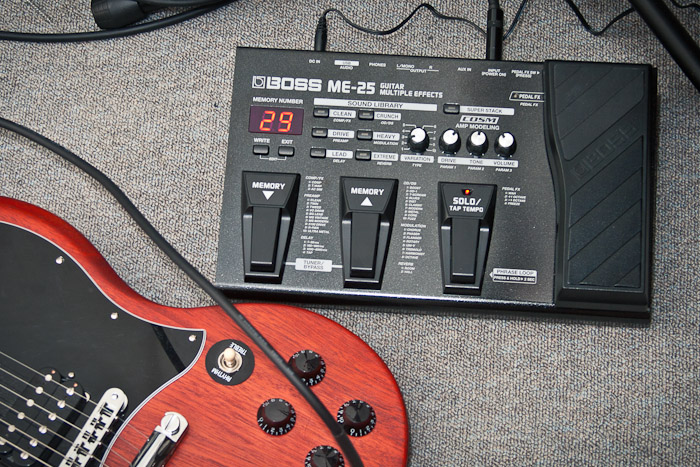 Nun war es so, dass das Ding nur 6,90€ kostet, Thomann aber einen Mindestbestellwert von 25€ oder so hat. Also sah ich mich faktisch gezwungen noch dieses kleine technische Wunderwerk dazu in den Warenkorb zu legen, ein Boss ME-25 Multieffektdings.