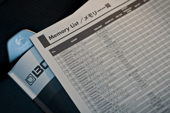 Als interessante Zugabe ist ein Zettel dabei, auf dem alle Presets aufgeschrieben sind. Guterweise auch in Katakana, was natürlich eine sehr schöne Übung darstellt.