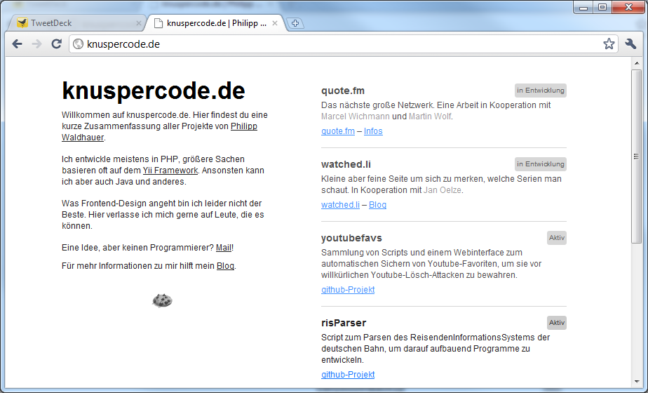 Schon seit längerer Zeit gehört knuspercode.de zu der Vielzahl an Domains, die auf mich registriert sind. Bisher fristete sie ein eher tristes dasein.