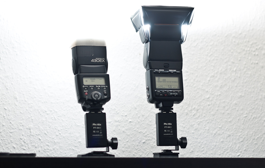 Und nun habe ich hier einen großen kleinen Bruder für meinen 430 EX, der sich wunderbar auslösen lässt. Insgesamt find ich ihn fast cooler als den Canon, weil er viel mehr Tasten und ein größeres Display hat, andererseits habe ich es aber noch nicht geschafft ihn unter 1/16 Stärke blitzen zu lassen, der Canon kann da immerhin noch bis 1/64. Aber ich denke für meine Zwecke ist es ausreichend.