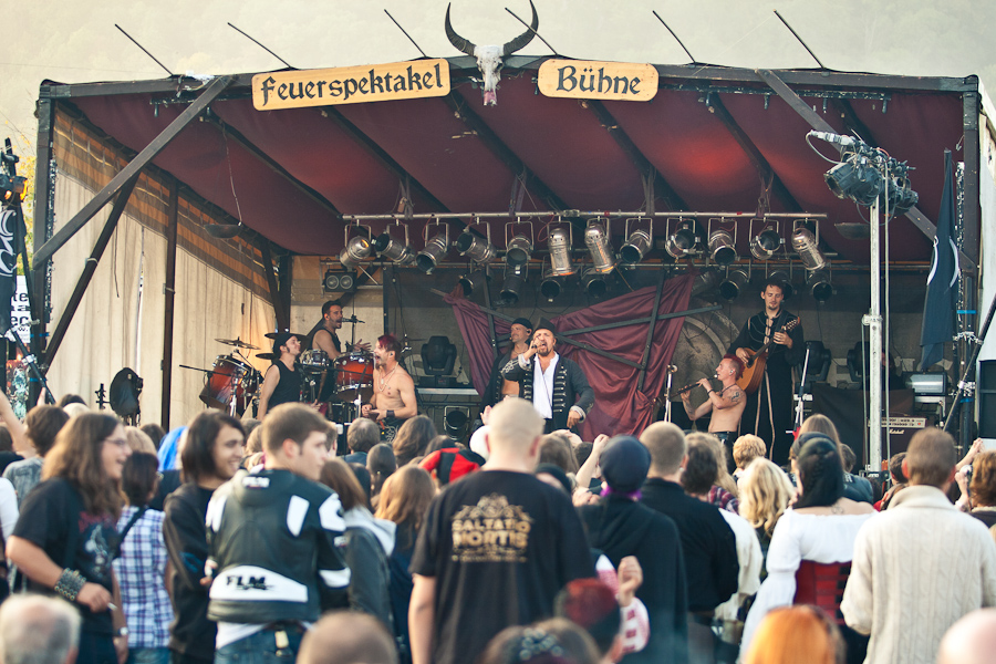 Danach kam dann das Highlight, das Nachtkonzert von Saltatio Mortis. Hier spielten sie dann auch ein paar mehr Lieder von der neuen CD in schönen Akustik-Versionen. War sehr schön! (Bis auf die einzelnen ziemlich besoffenen Krawallmacher im Publikum)