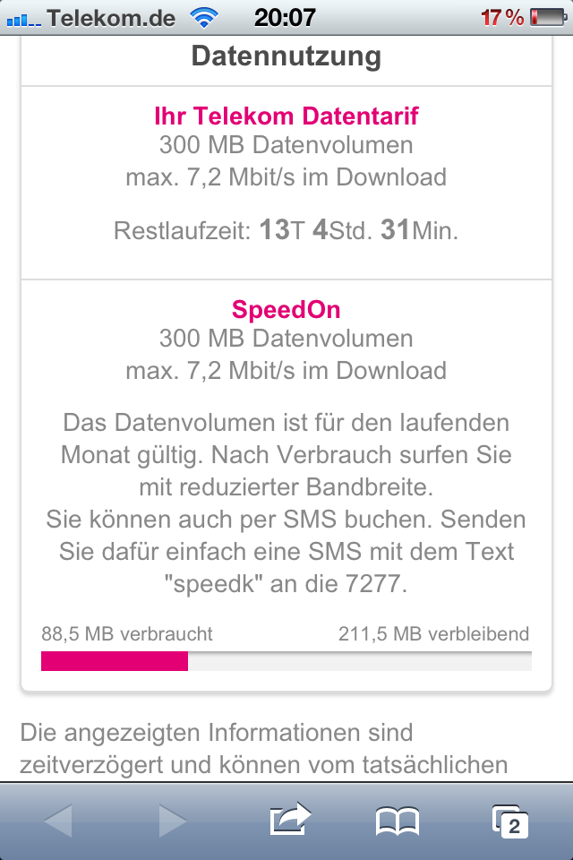 Das einzige störende war bisher immer die Internet-"Flatrate" mit einer Volumengrenze von 300 MB im Monat.